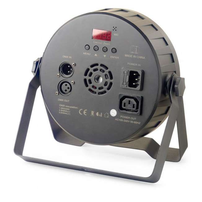 - Input and output: 3-pin DMX and IEC