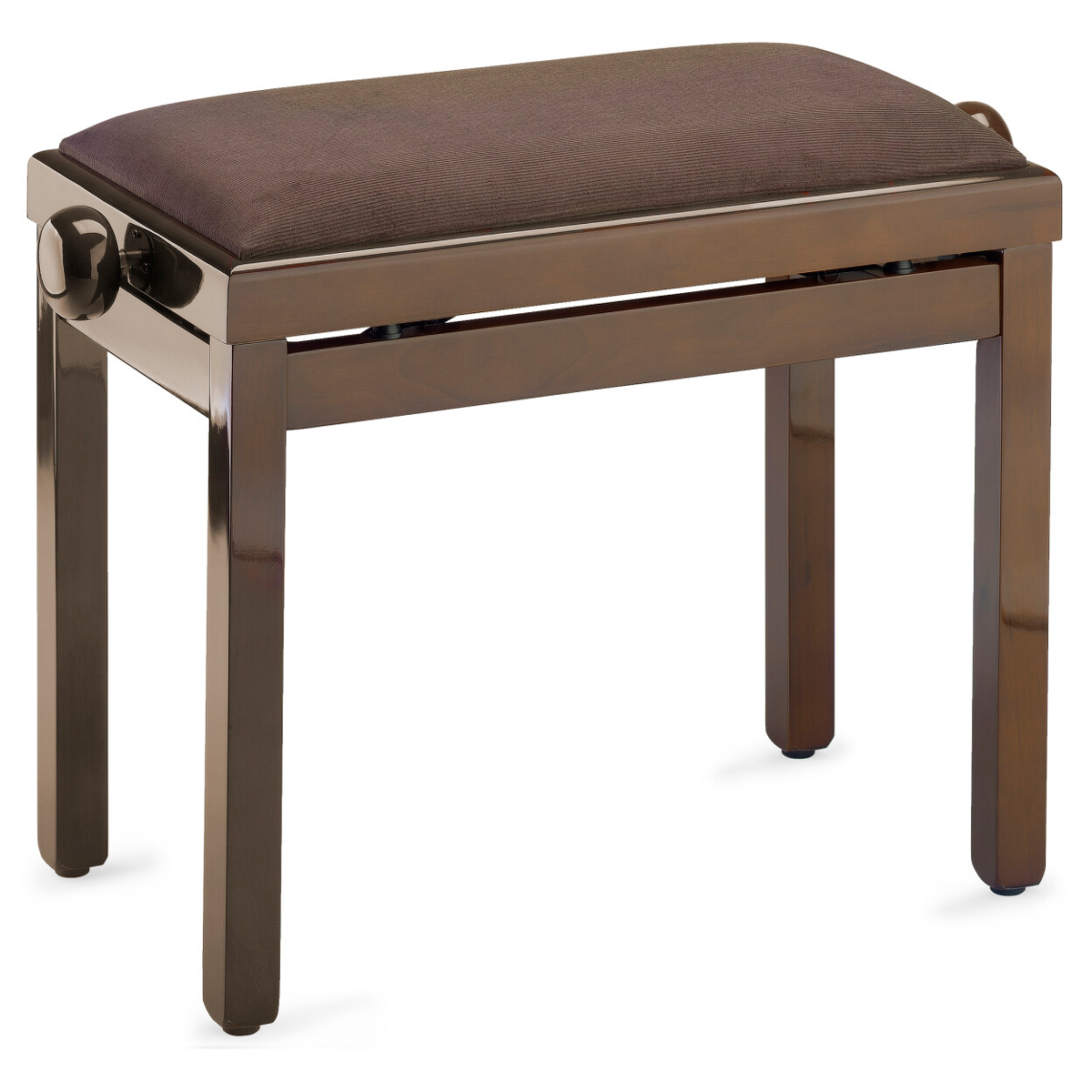 Elegant justerbar pianokrakk i høyglans valnøttfinish med mykt, brunt fløyelstrekk. Solid konstruksjon i eik.