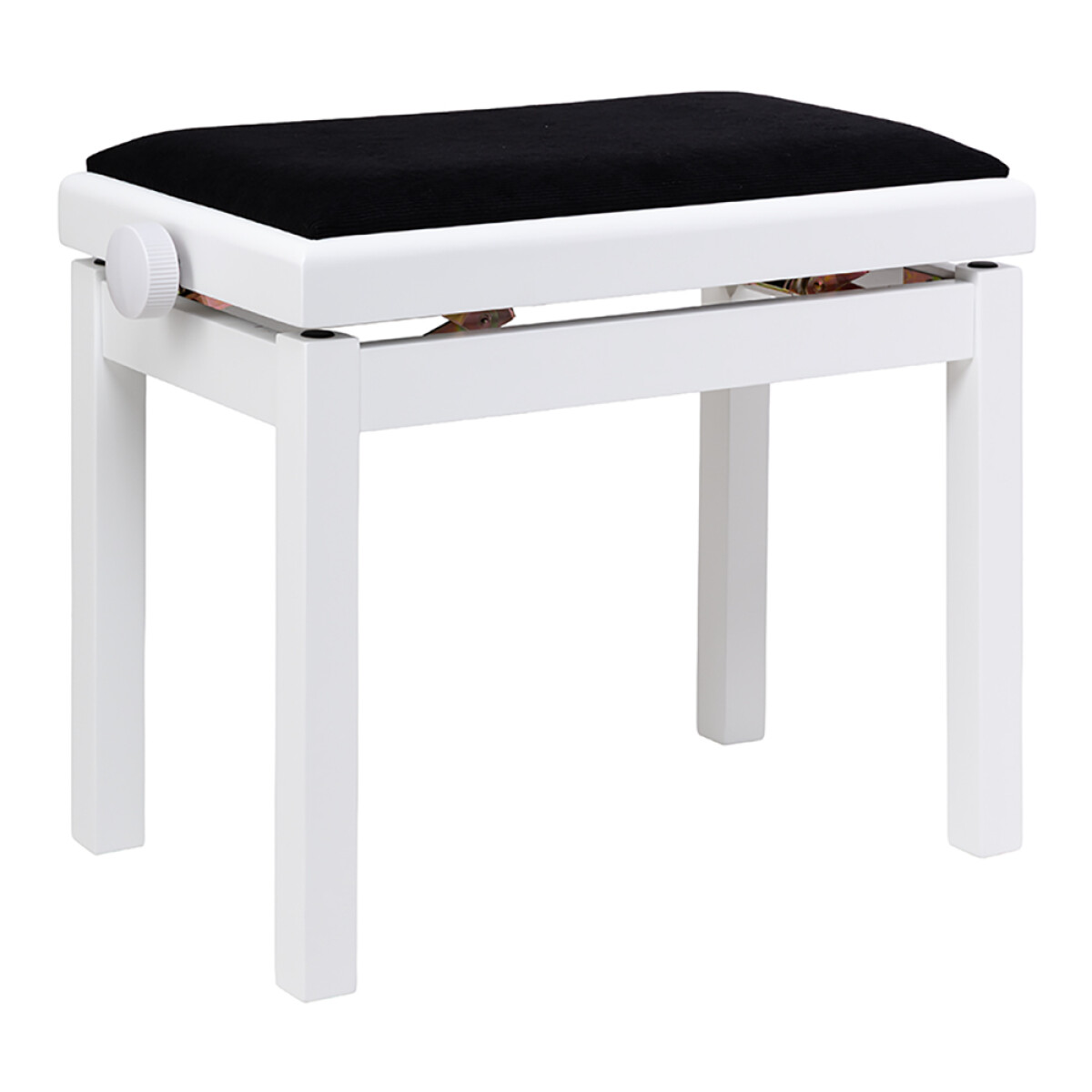 Matt Hvit piano krakk med sort velursoverflate og høydejustering