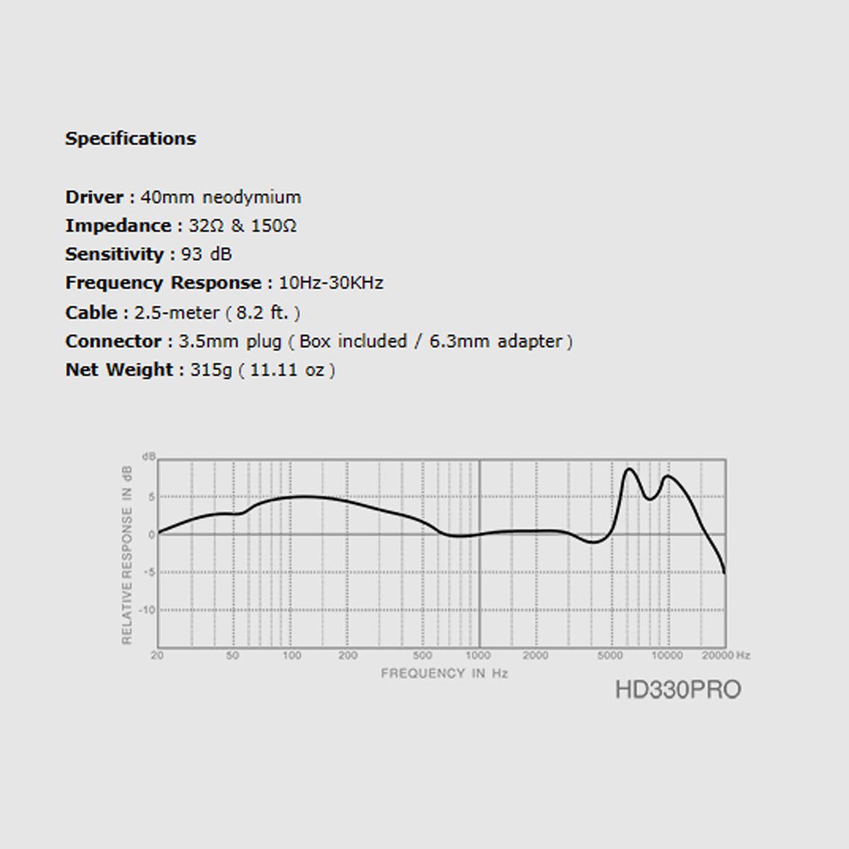 same time. It is suitable for most all kinds of the music.HD330PRO features with wide -range frequency respon-se