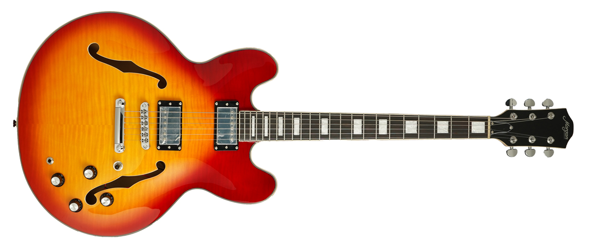 Flott og tøff halvakutstisk elgitar i kjent design med lyd